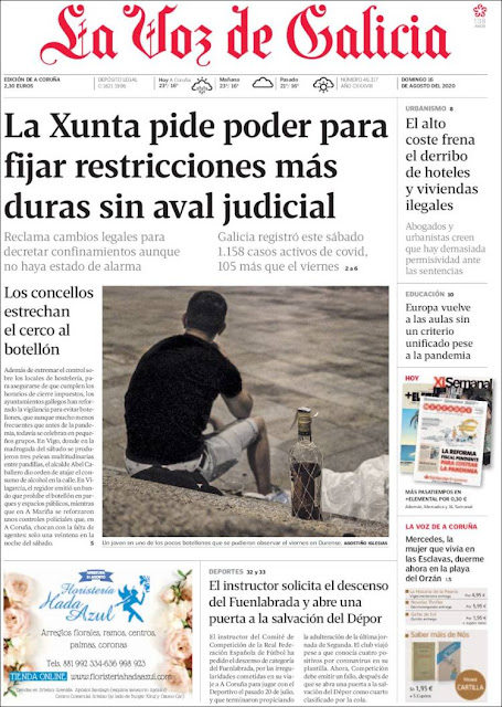 Galicia y Portugal. Portadas de la Prensa de este domingo, día de San Roque