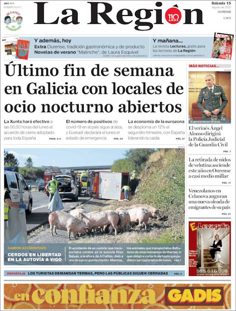 Portugal y Galicia. Portadas de la Prensa del sábado, 15 de agosto de 2020
