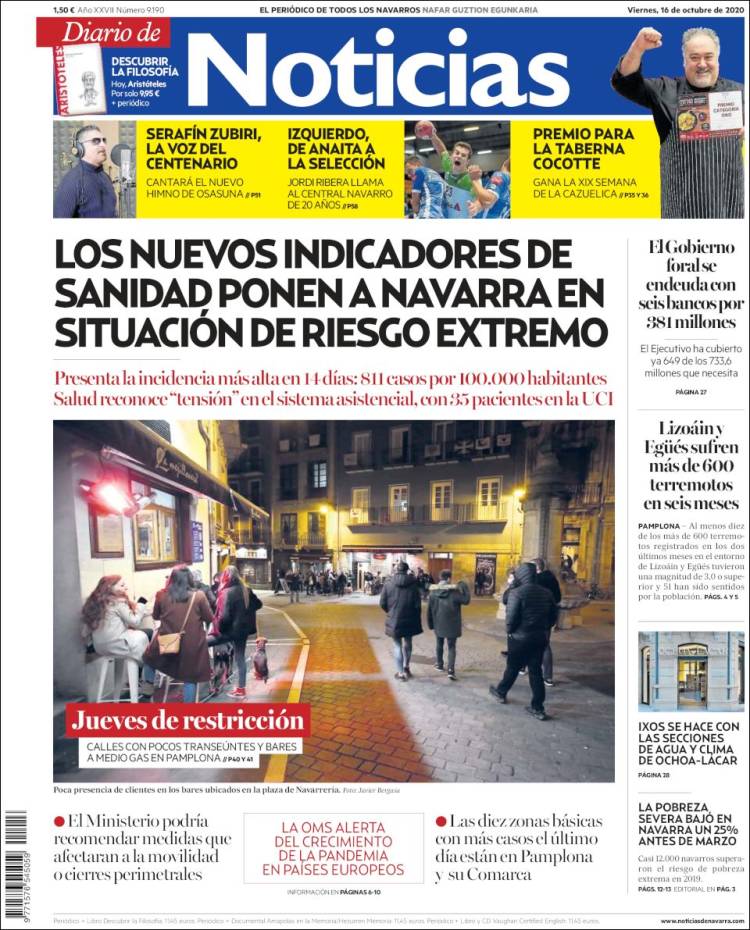 Portadas de la Prensa del viernes, 16-10-2020. España-Galicia y Portugal