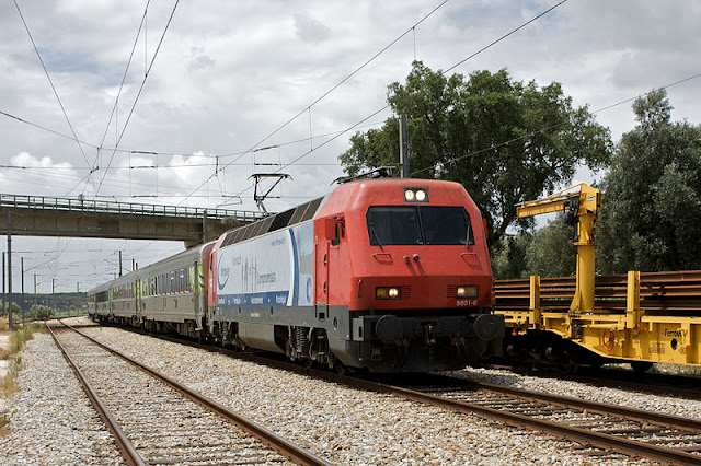| Estos son los famosos coches "Arco" que están quedando como nuevos en su paso por los talleres especializados de Guifões. Aún tardarán en ser utilizados en la Linha do Minho y en el servicio Inter-regional entre Valença y Coimbra. La razón no es otra que están pendientes del proceso de homologación europeo. Como bien ha explicado el experto en temas ferroviarios, Matute Duarte, los Ferrocarriles portugueses, o sea, la CP, han solicitado la homologación de estos coches exArco a la Agencia Ferroviaria Europea, que es la competente para los vehículos destinados a operaciones transfronterizas, por lo que se deduce que quiere utilizarlos también en España en un futuro más o menos próximo : cuando se solucione la disparidad de tensión en el tramo entre Valença y Vigo, o cuando dispongan de una locomotora bitensión para arrastrar este material en el trayecto de Tui a Vigo. Pero también : homologarlos es un paso firme para, si decide CP recuperar el servicio del tren nocturno Sud-Expresso, poder disponer de material propio (incluidas literas) en vez de tener que alquilárselo a Renfe como sucedía hasta que el tren internacional nocturno desapareció... |
