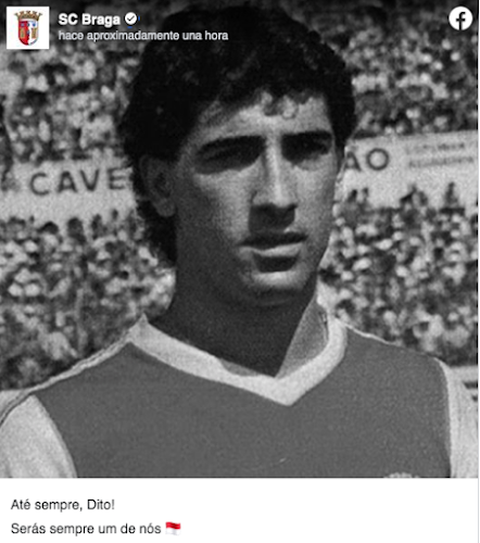 Hace un año largo, el club en donde comenzó Dito, el modestísimo Alheira FC, de Barcelos, rendía homenaje al ahora fallecido. Posiblemente ha sido, el de su primer equipo, el último acto de gratitud y homenaje que Eduardo Gomes Cameselle recibió en vida. Y ofreció ese homenaje, en emotivas palabras, Domingos Marques (entiendo que Domingos Fernandes Marques) presidente del consejo directivo del club Alheira. Voy ahora a la página en Facebook del primer club de Dito; y veo una esquela del 14 de marzo pasado, que da cuenta de la muerte del señor Domingos Fernandes Marques, justamente un año después de aquel homenaje a Dito y aquellas vibrantes palabras de recuerdo hacia la figura de su padre.